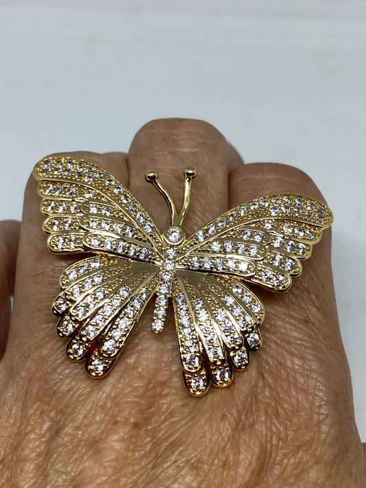 Vintage Butterfly Ring Gold filled Deco Cocktail