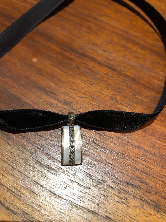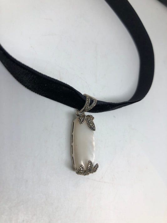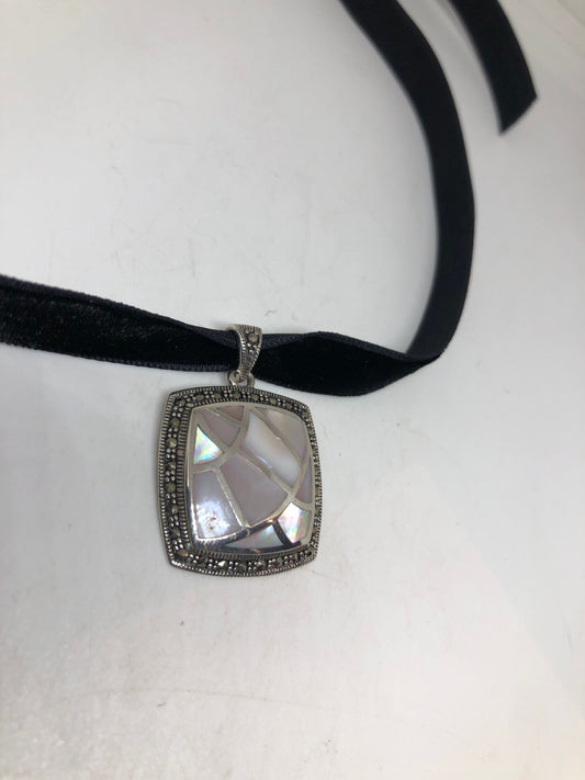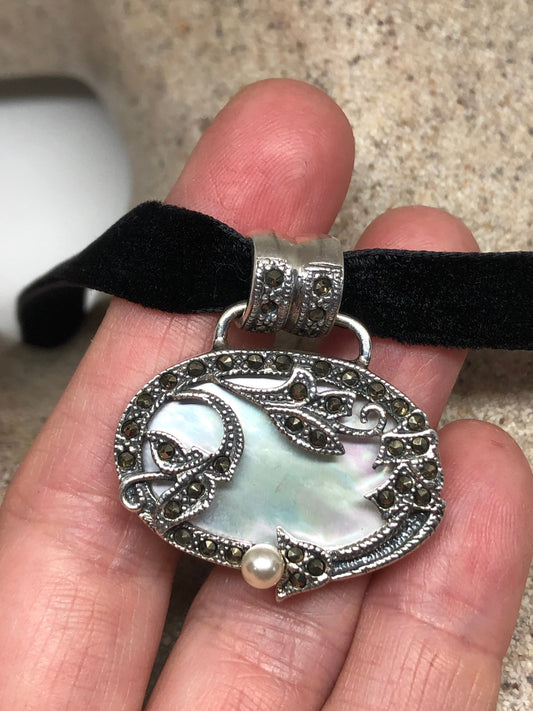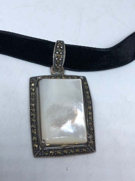 Vintage Deco Mother of a Pearl Choker Marcasite 925 Sterling Silver Necklace