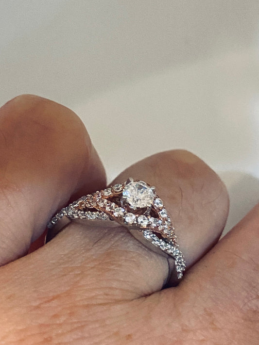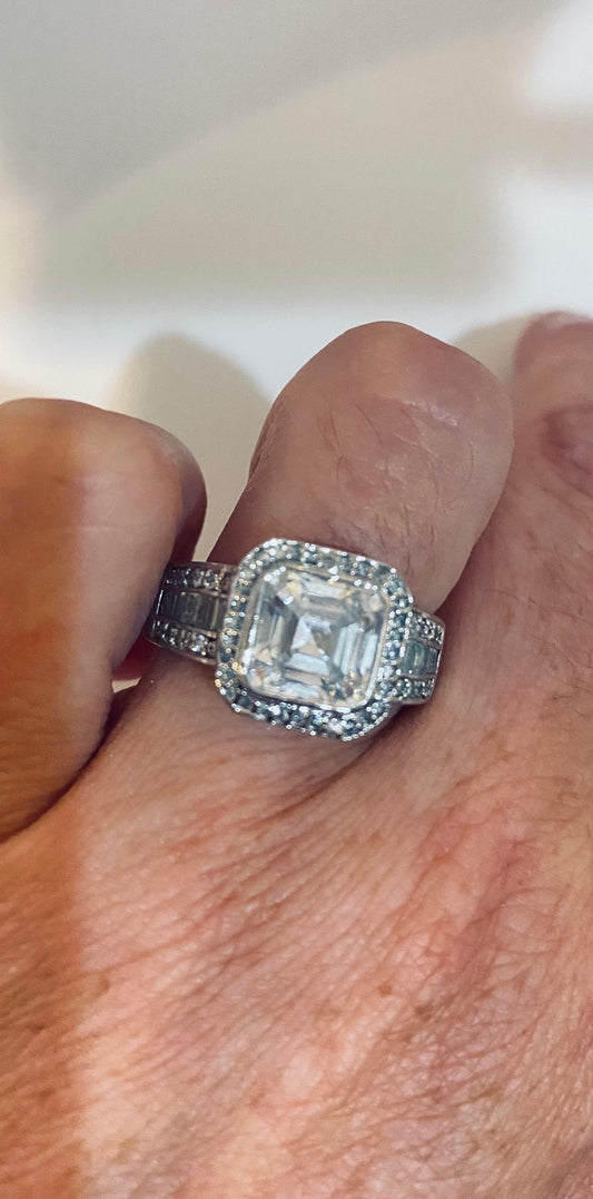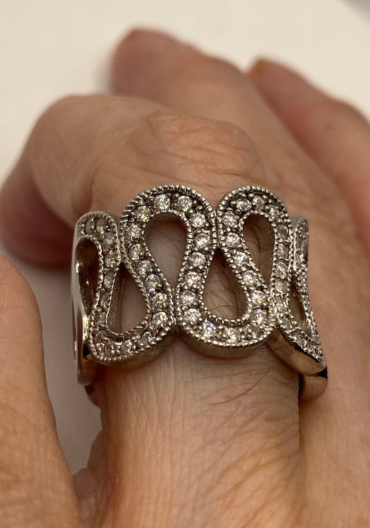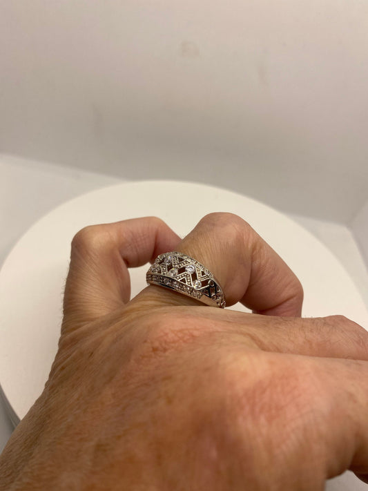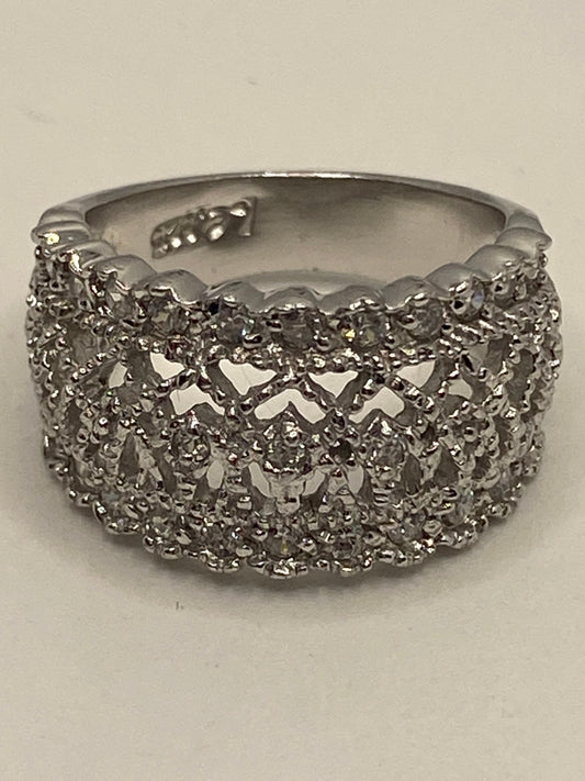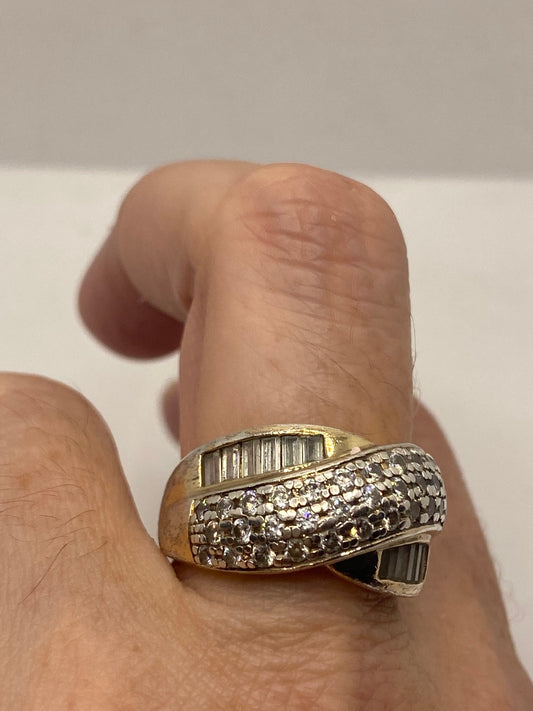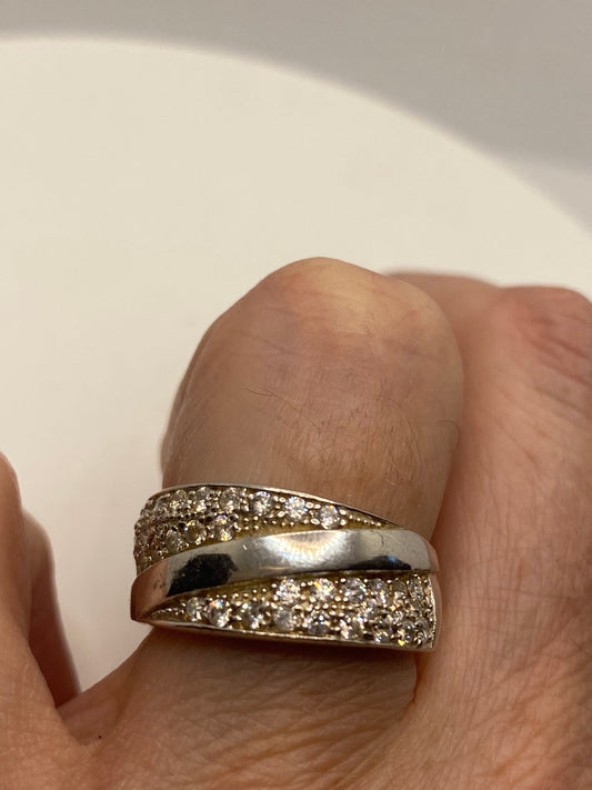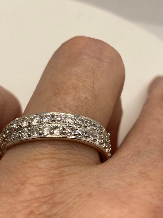 Vintage White Sapphire and CZ 925 Sterling Silver Wedding Band Ring