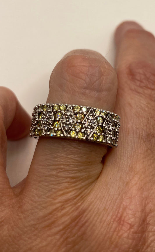 Vintage White Sapphire and Lemon Quartz 925 Sterling Silver Wedding Band Ring