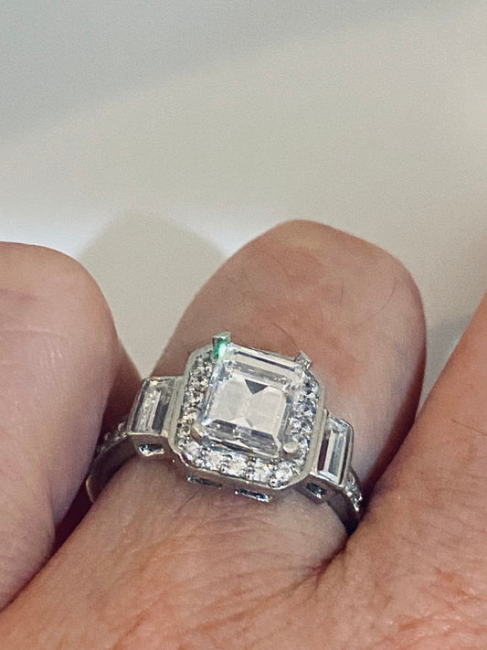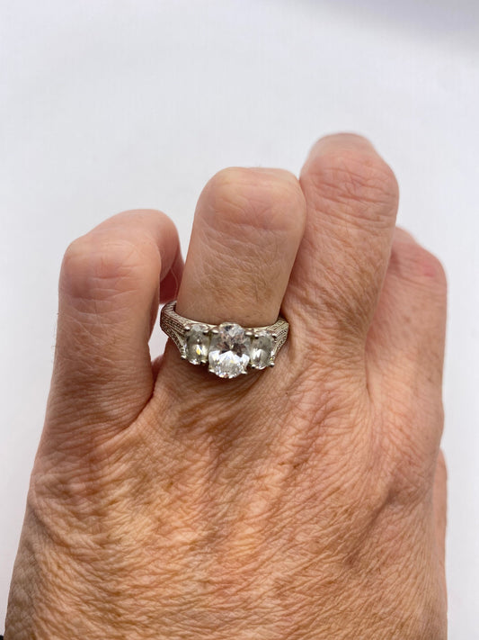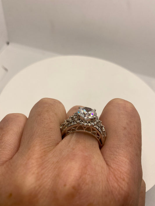 Vintage White Sapphire 925 Sterling Silver Wedding Band Ring