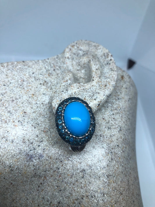 Vintage Handmade Sterling Silver Genuine Deep Blue Sapphire and turquoise Earrings