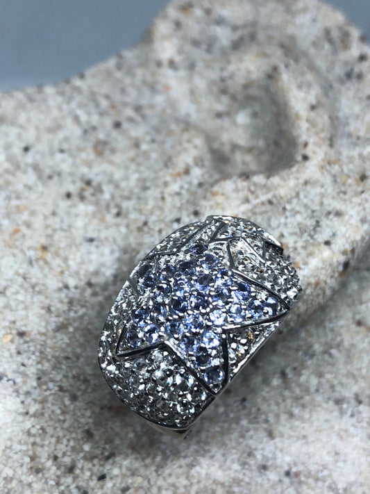 Vintage Handmade Sterling Silver Deep Blue Iolite star Earrings