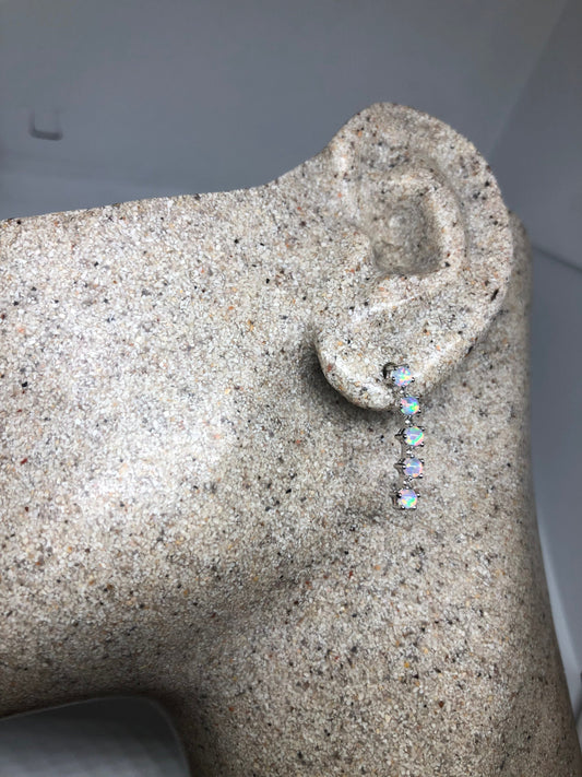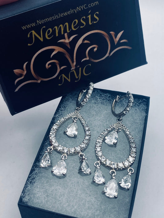 Vintage Sterling Silver diamond look Gemstone Chandelier Earrings