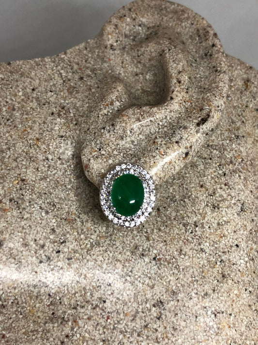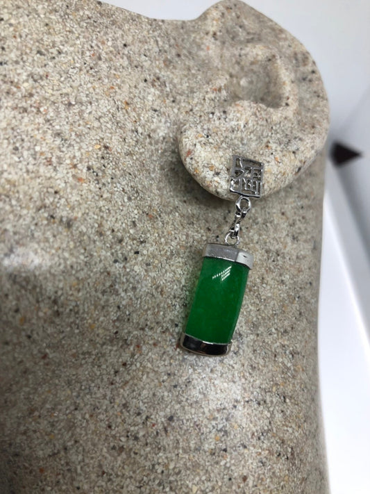 Vintage Fun Green Jade Gemstone Silver Bronze Earrings