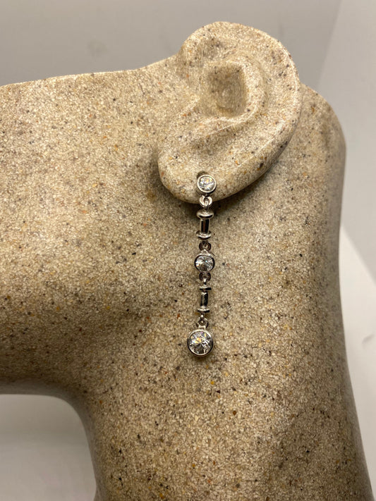 Vintage Genuine White Sapphire 925 Sterling Silver Dangle Chandelier Earrings