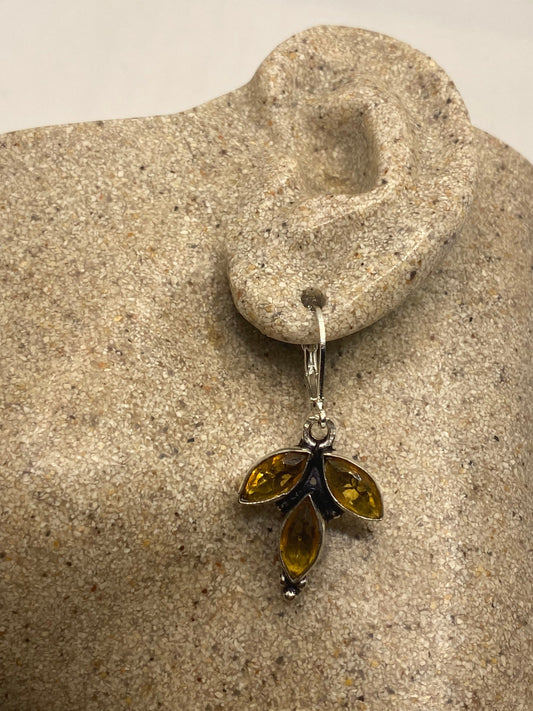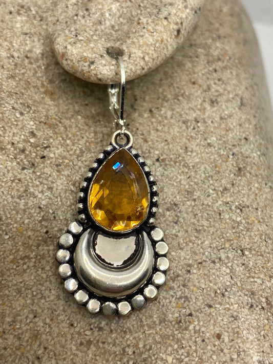 Vintage Citrine 925 Sterling Silver Lever Back Earrings