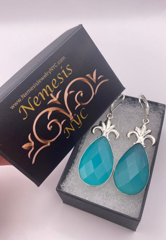 Vintage Blue Chalcedony Iolite Earrings Silver Dangle
