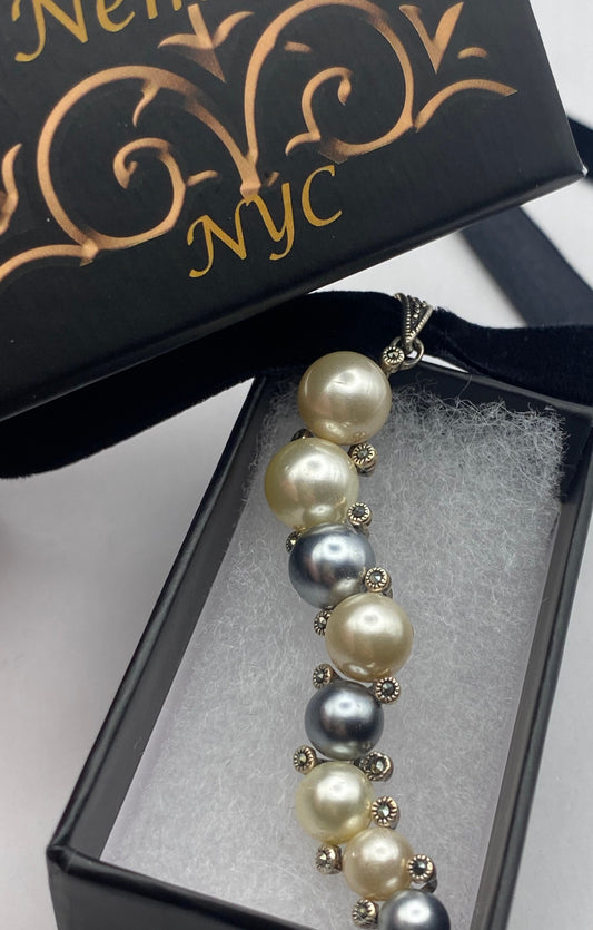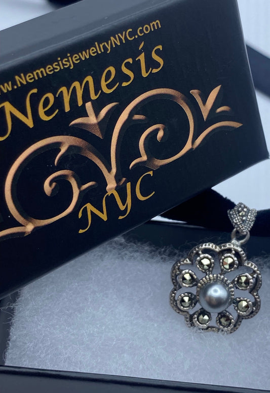 Vintage Pearl Marcasite 925 Sterling Silver Heart Dangle Earrings