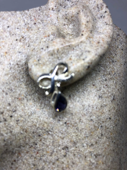 Vintage Handmade Sterling Silver Genuine Deep Blue Iolite bow Earrings