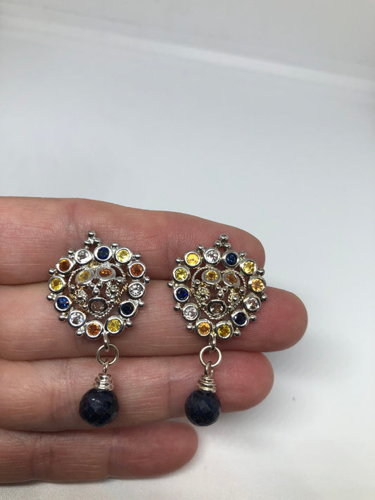 Vintage Genuine Gemstone 925 Sterling Silver Earrings