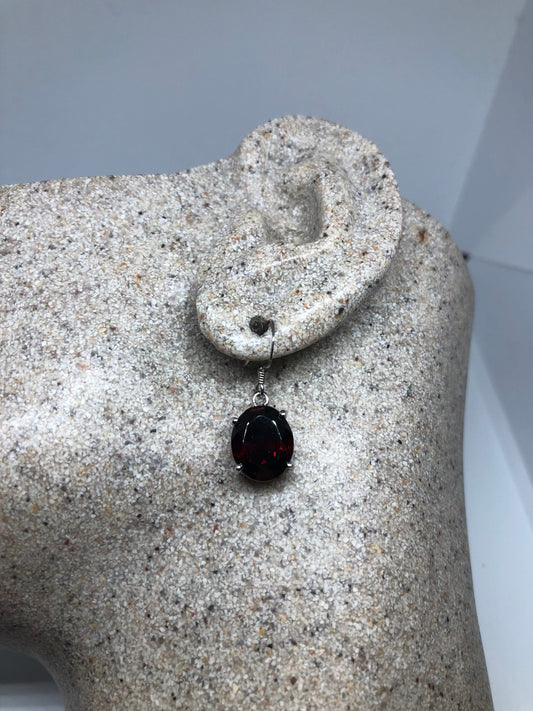 Vintage Bohemian Garnet Dangle Earrings 925 Sterling Silver