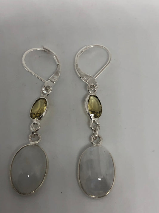 Vintage Rainbow Moonstone Citrine Sterling Silver Lever Back Dangle Earrings