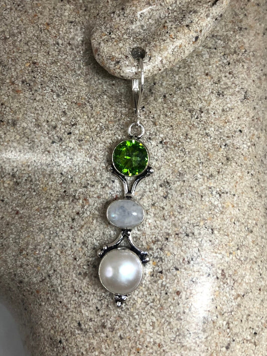 Vintage Rainbow Moonstone 925 Sterling Silver Lever Back Dangle Earrings