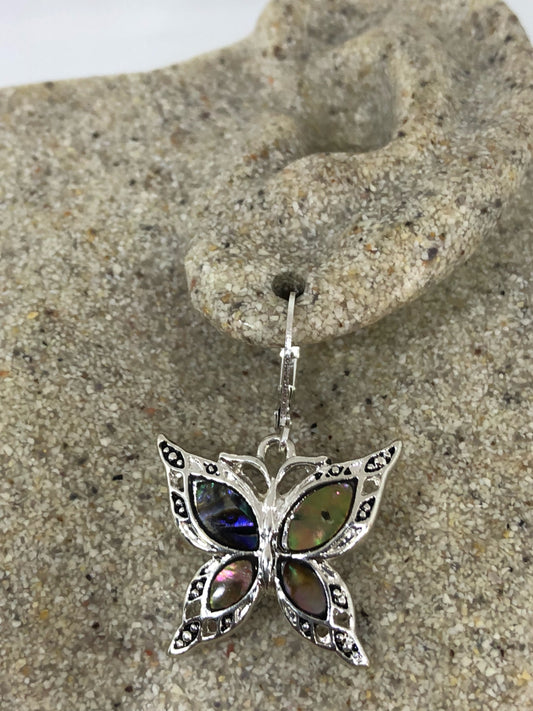 Vintage Handmade Silver Butterfly Rainbow Abalone Earrings