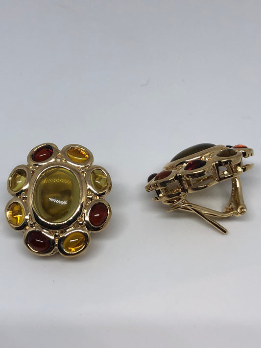 Vintage Mixed Golden Genuine Gemstone Filigree 925 Sterling Silver button Earrings