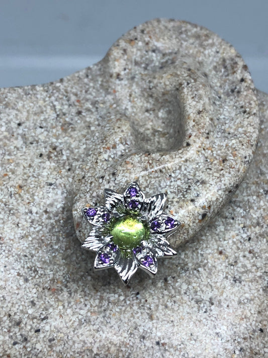 Vintage Green 925 Sterling Silver Green Chrome Diopside post button Earrings