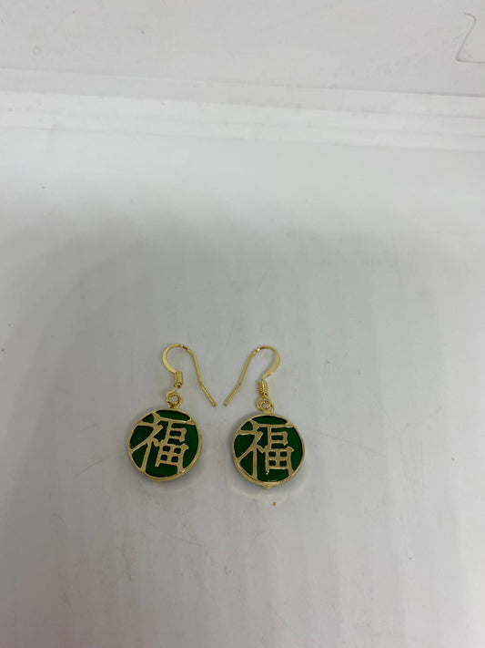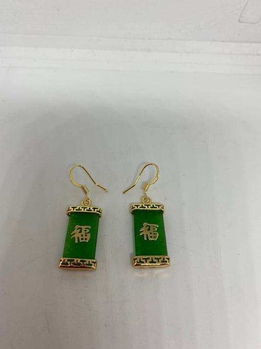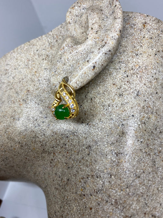 Vintage Fun Green Jade Gemstone Gold Rhodium Bronze Earrings
