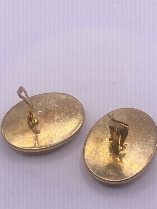 Vintage Pink Rose Quartz Earrings in Golden Bronze Clip-On