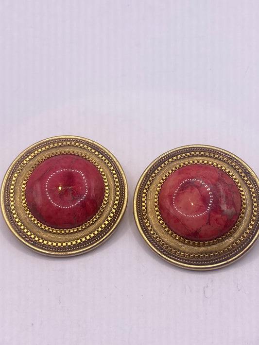 Vintage Pink Cherry Quartz Earrings in Golden Bronze Clip-On