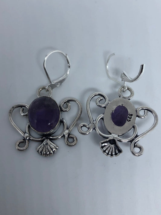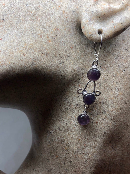 Vintage Sterling Silver Purple Amethyst Lever Back Earrings