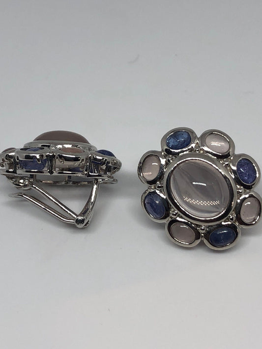 Vintage Rose Quartz 925 Sterling Silver button Earrings
