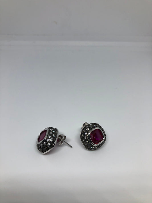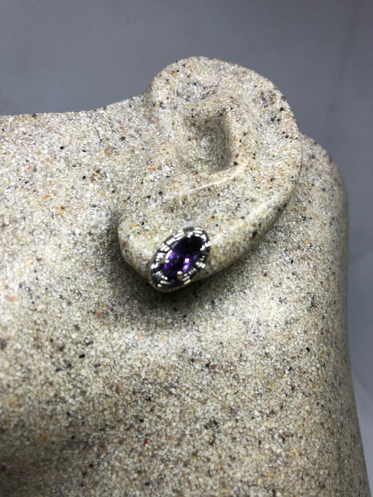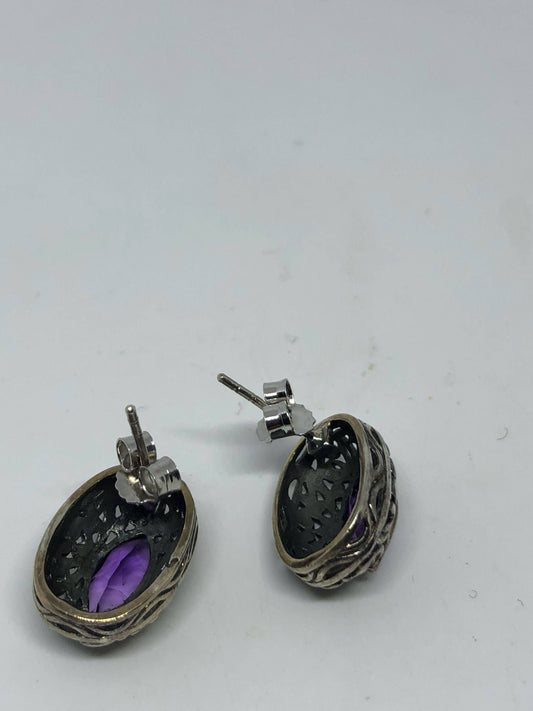 Vintage Amethyst Earrings 925 Sterling Silver Purple Stud Button