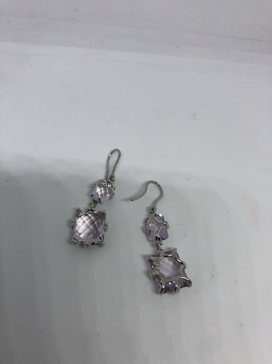 Vintage Purple Amethyst Earrings 925 Sterling Silver Chandelier Dangles