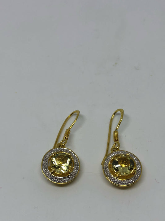 Vintage Citrine Earrings Golden 925 Sterling Silver Deco Dangle