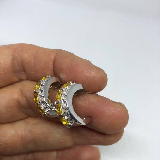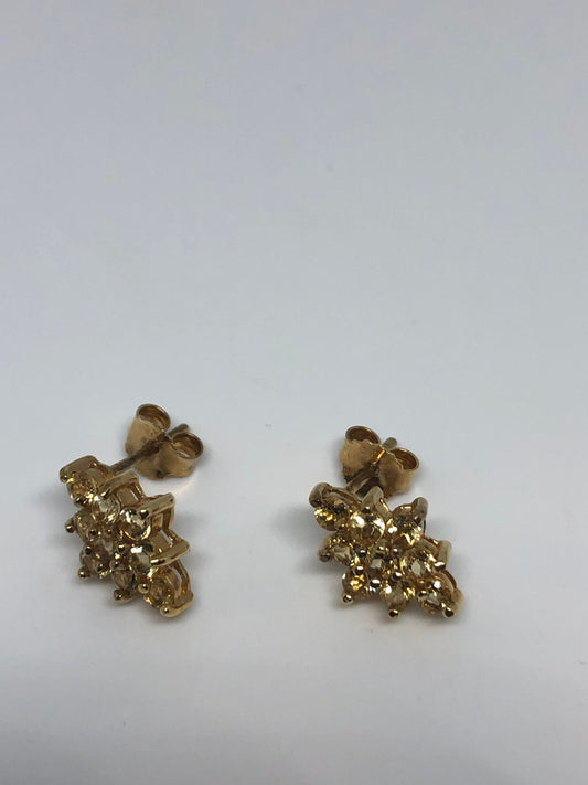 Vintage Genuine Citrine Gemstone 925 Sterling Silver Stud Earrings