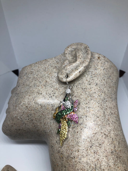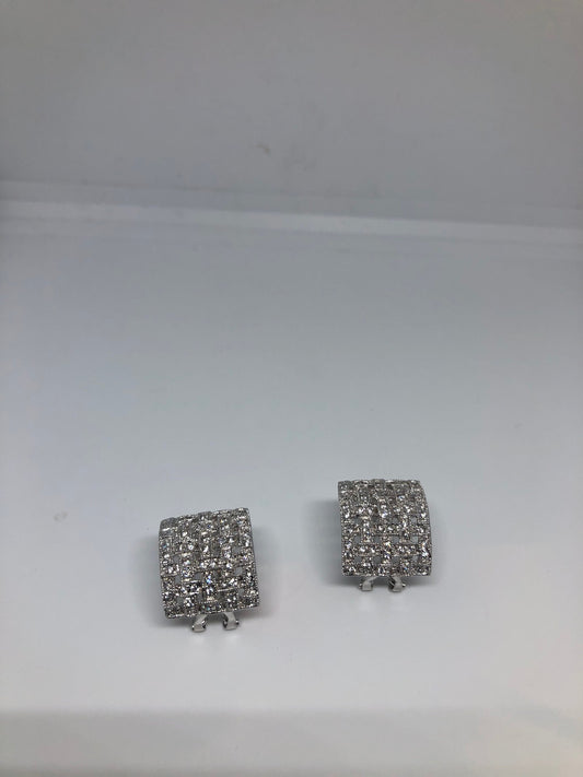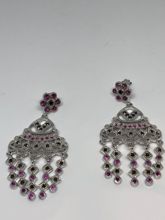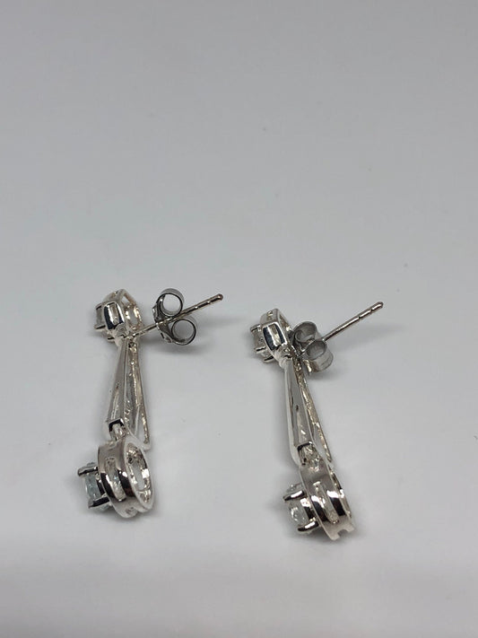 Vintage Handmade Sterling Silver diamond look Gemstone dramatic Earrings