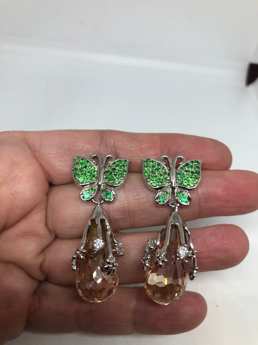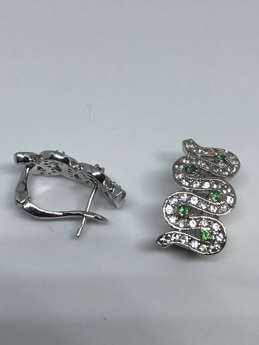 Vintage Handmade 925 Sterling Silver Chrome Diopside White Sapphire Earrings