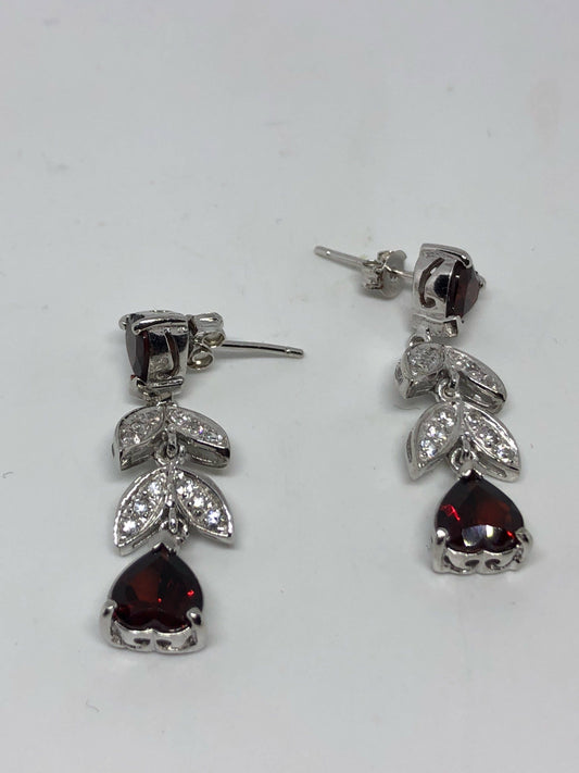 Vintage Bohemian Red Garnet Earrings 925 Sterling Silver Deco HEart Dangle