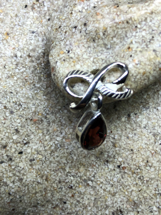 Vintage Bohemian Red Garnet Earrings 925 Sterling Silver Bow Dangle
