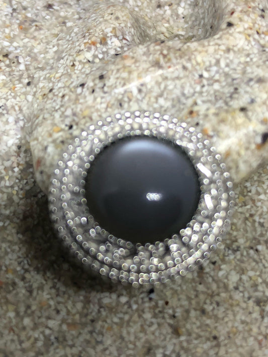 Vintage Genuine Gray Moonstone Gemstone Filigree Sterling Silver Stud Earrings