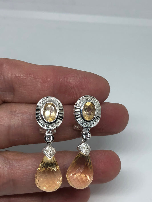 Vintage Citrine Earrings 925 Sterling Silver Chandelier Dangle