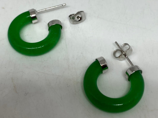 Vintage Fun Green Jade Hoop Gemstone Silver Bronze Earrings