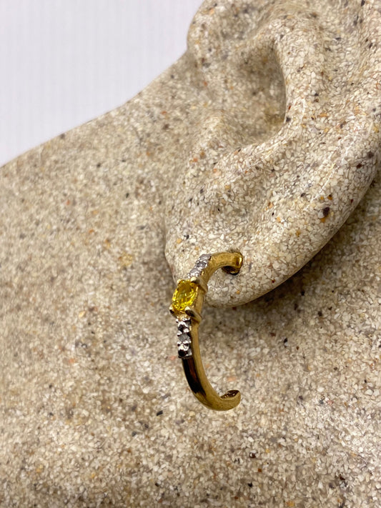Vintage Golden Sterling Silver Genuine Citrine Hoop Earrings