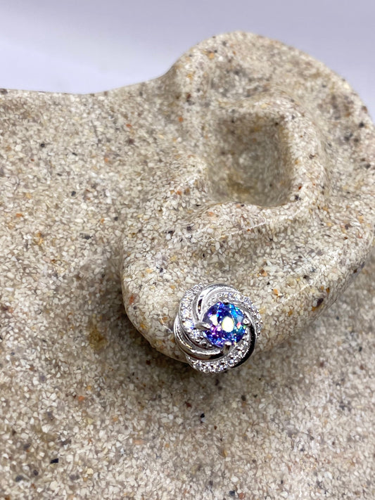 Vintage Handmade 925 Sterling Silver Blue Mystic Topaz Earrings