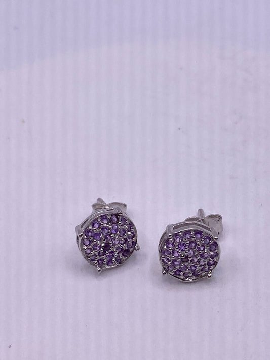 Vintage Amethyst Earrings 925 Sterling Silver Purple Stud Button