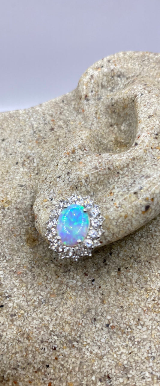 Vintage Blue Opal Earrings 925 Sterling Silver Studs