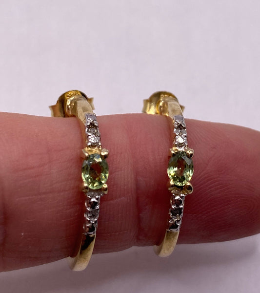 Vintage Golden Sterling Silver Genuine Green Peridot Hoop Earrings