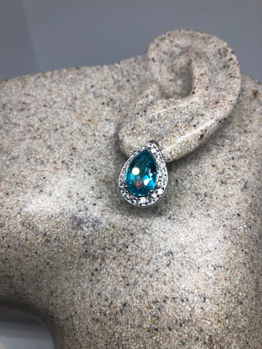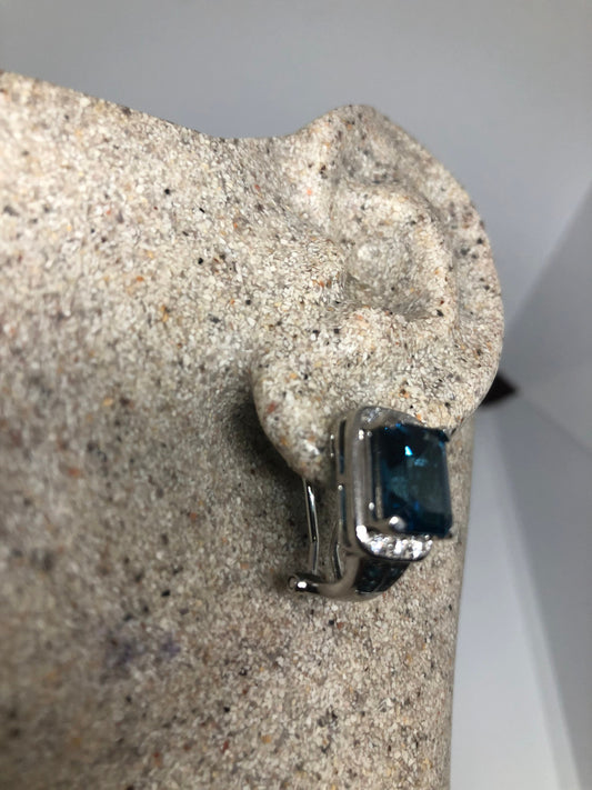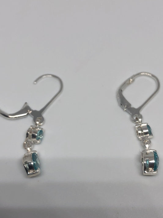 Vintage Genuine Blue Topaz Gemstone 925 Sterling Silver Earrings