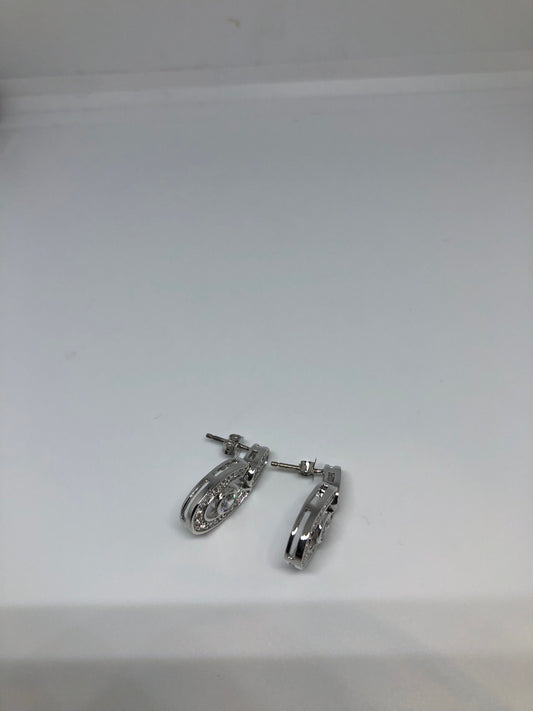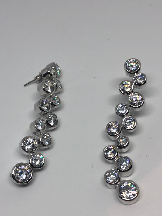 Vintage Handmade Sterling Silver diamond look Gemstone dramatic Earrings