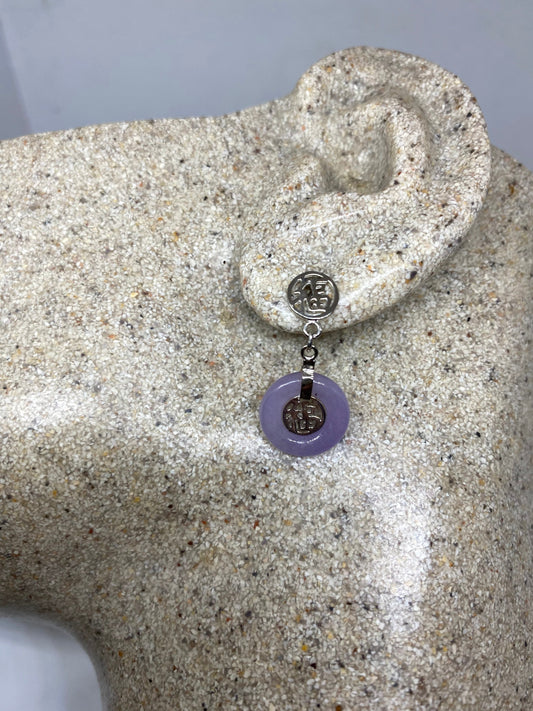 Vintage Genuine Purple Jade Gemstone Silver Earrings