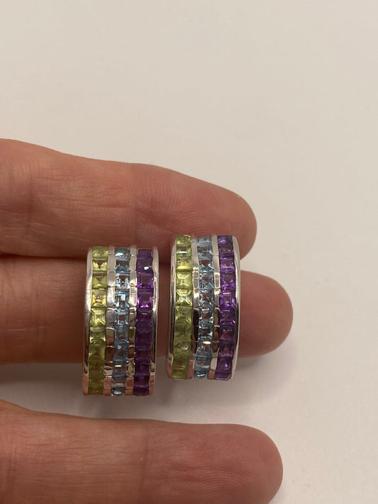 Vintage Genuine Gemstone 925 Sterling Silver Earrings