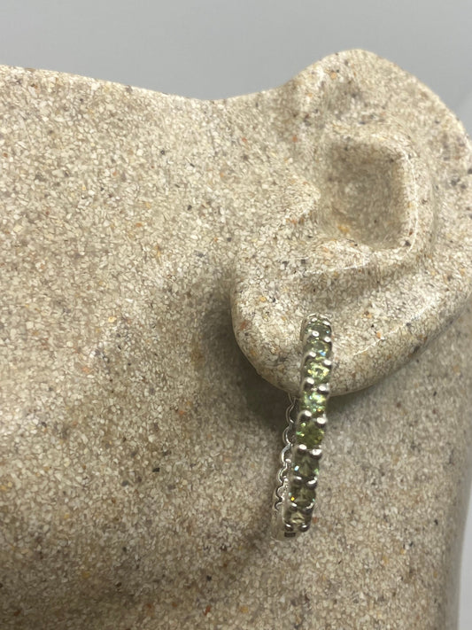 Vintage Handmade Sterling Silver Genuine Green Peridot post button Earrings