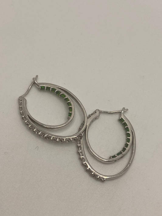 Vintage Handmade 925 Sterling Silver Chrome Diopside Hoop Earrings