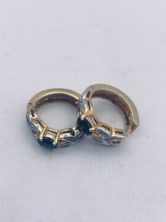 Vintage Blue Sapphire Hoops Golden 925 Sterling Silver Earrings