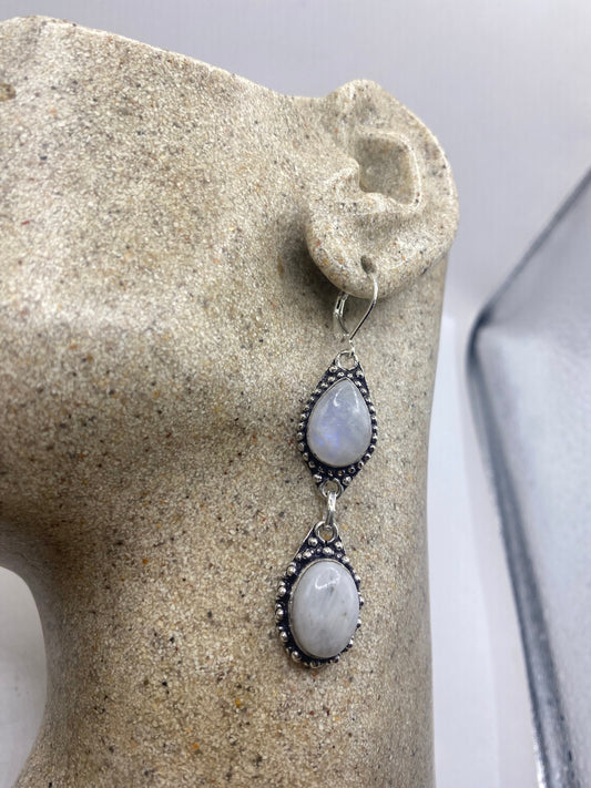 Vintage Rainbow Moonstone Sterling Silver Lever Back Dangle Earrings